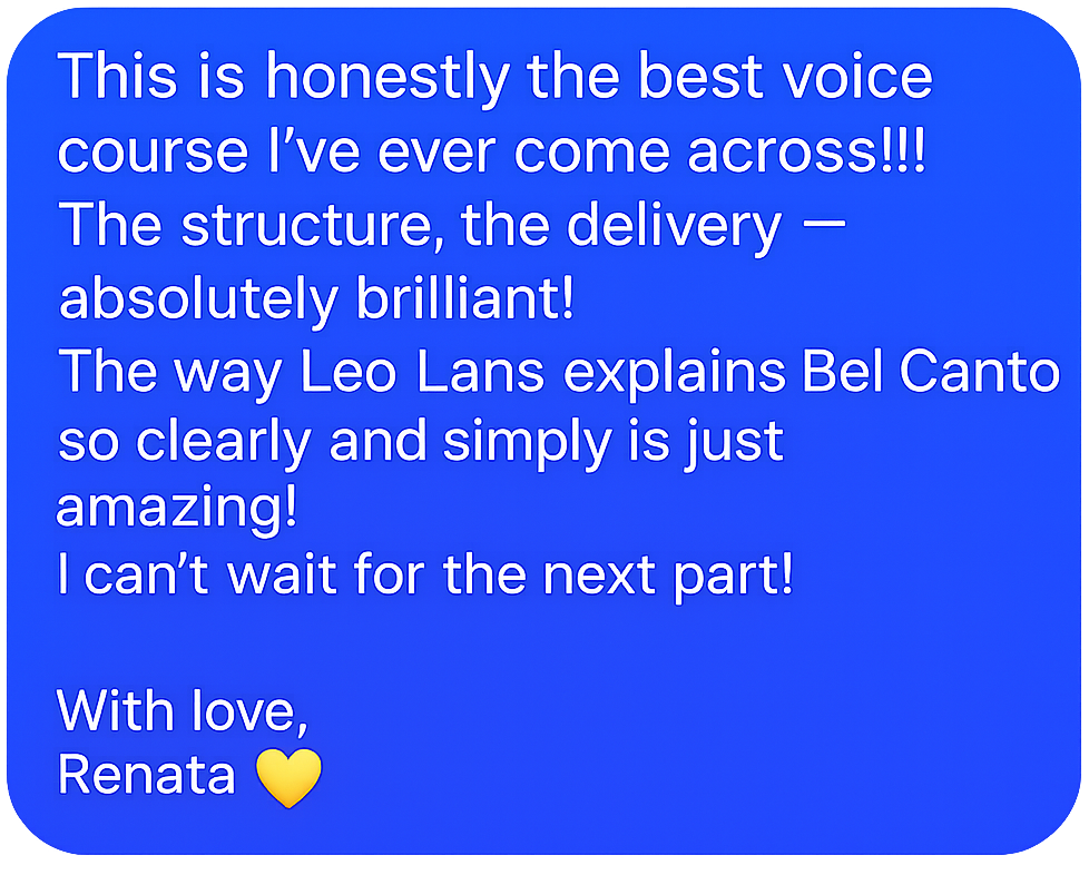 Each lesson is about 10-15 minutes on average. No extra talk and no vague wording. Everything is clear and focused only on your result. Lesson by lesson, you will build a clear understanding of singing, and begin to consciously control your voice.