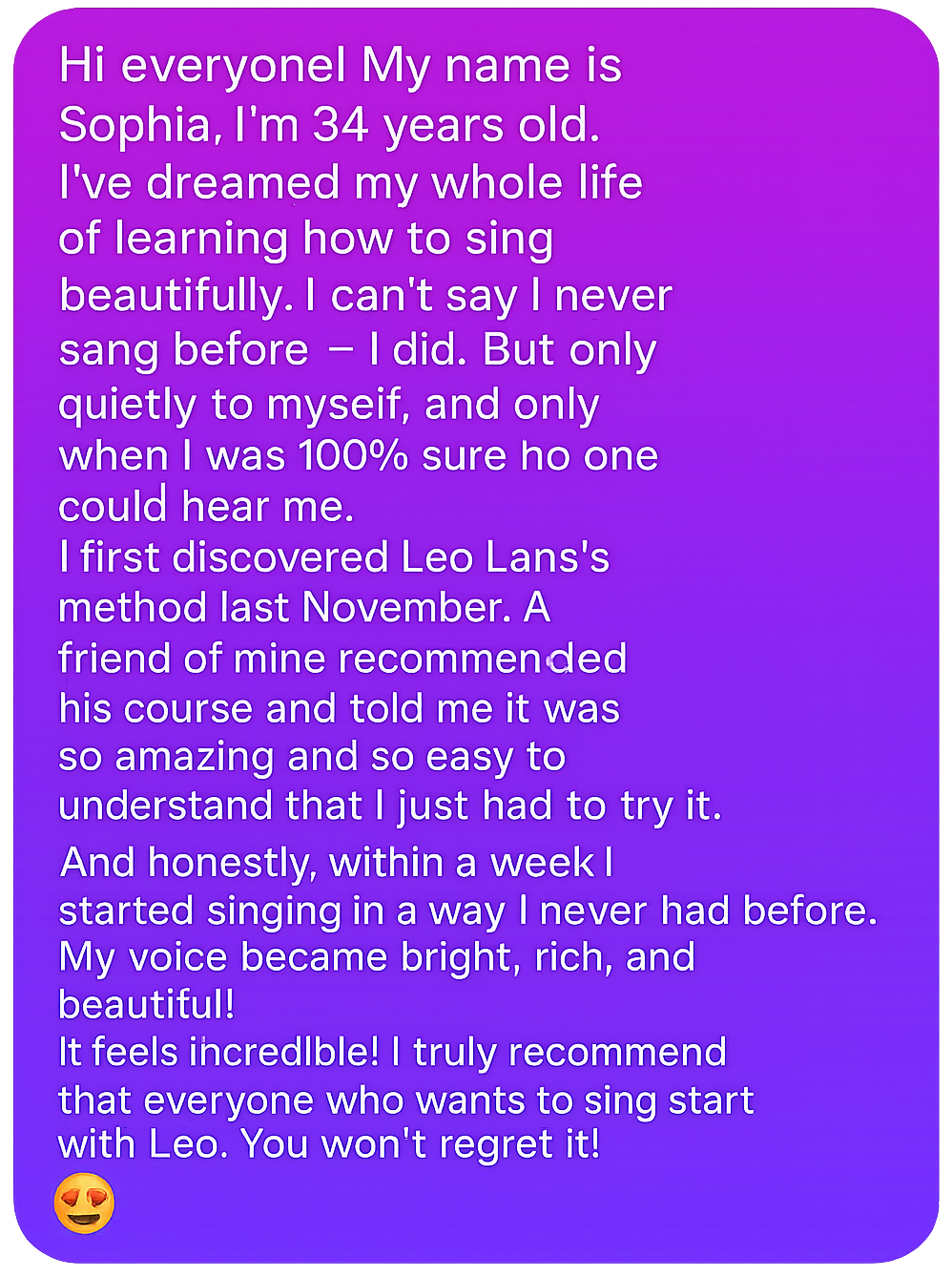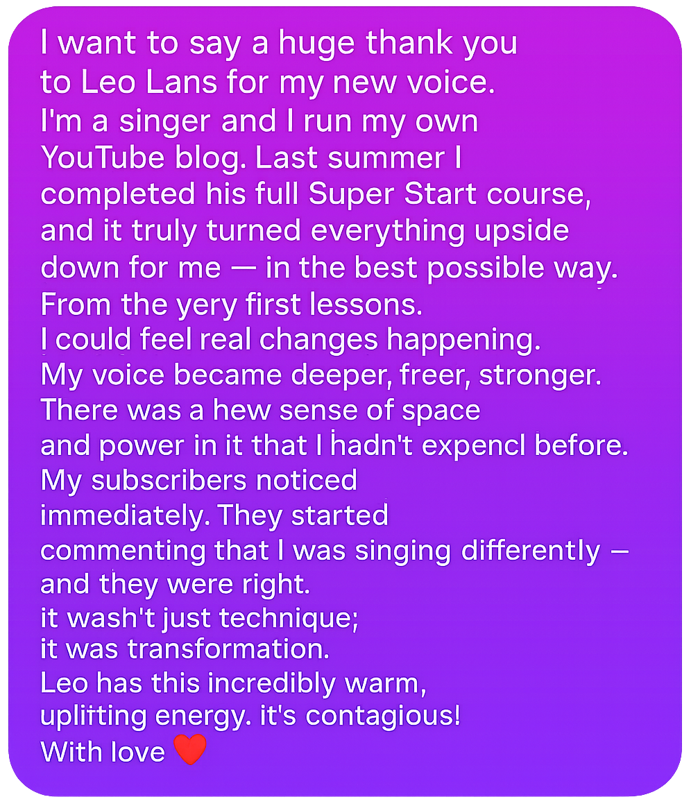After completing my course Lans Voice Super Start you will sing like never before!